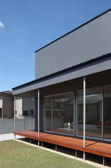 今までと変わらず家族がいつもそばにいられる家 伊勢崎市内に計画された家族4人のための住宅。敷地から徒歩圏内の賃貸物件にお住まいだったが生活圏を変えずに済む場所に分譲地が出たため購入された。当初ご夫婦は大きくなってきたお子さん達の個室を検討されたが、娘さんの今まで通り4人一部屋で就寝した方が良いという一言と4人のどこかフラットな関係性に魅力を感じ、それぞれの気配が感じられる住まいを提案した。 南側の道路からプライバシーを守るため駐車スペースを取った部分にRC壁を建て敷地内に境界を造る。境界内は東から庭、ウッドデッキ、吹抜けのLDK、個々のスペース、水回り+収納とレイヤを造り開放性や視線を東に、明るさは吹抜け上部南側から取り入れた。全ての居室は吹抜けを介しワンルームとなり家族の活動が空間に滲み出てくる。お互いがそばにいる、そんな住宅となっている。