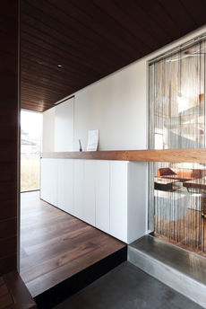 距離によって新たな身体的関係性をもたらす住居 敷地は猛暑で名高い館林市に有り、間口10m×奥行50mの深さを持つ。この長い敷地の中で自然を利用し夏の暑さから守られるような住まいを目指した。東側に敷地に沿うように流れる川があり、安定した風を運んでくれる。その川に向けて大開口を設け建物幅を必要最小限に抑え風が常に通り抜けるような計画とした。大開口側には軒の深いデッキスペースを設け、生活の場を強い日差しから守りながら拡大している。西側には水周りとプライベートデッキを設けユーティリティースペースとして活用できる。その他にも効果的にドライエリアを設け居室に光と風を届け、浴室部分には露天風呂を配している。同じ空間にいながらも各々が自由に過ごせる事が出来る、距離がもたらす新たな身体的感覚を我々に教えてくれた住まいとなった。